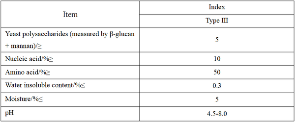The morphology, physicochemical requirements and hygienic requirements of yeast glycosides are shown in Table 1 and Table 2.