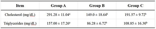 Table 2. Serum concentration of cholesterol and triglycerides in dogs