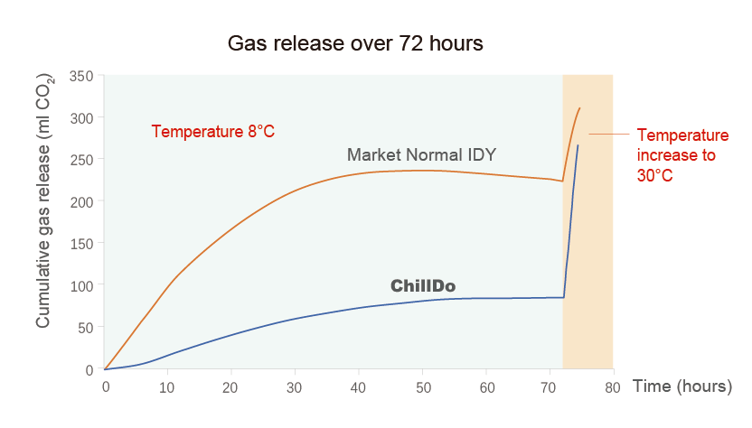 A yeast strain specially developed for chilled dough stored at 0-10°C enters a dormant state under refrigeration, preventing damage to gluten caused by dough fermentation. After the temperature increased, the yeast rapidly enhances its activity, enabling rapid fermentation to occur.