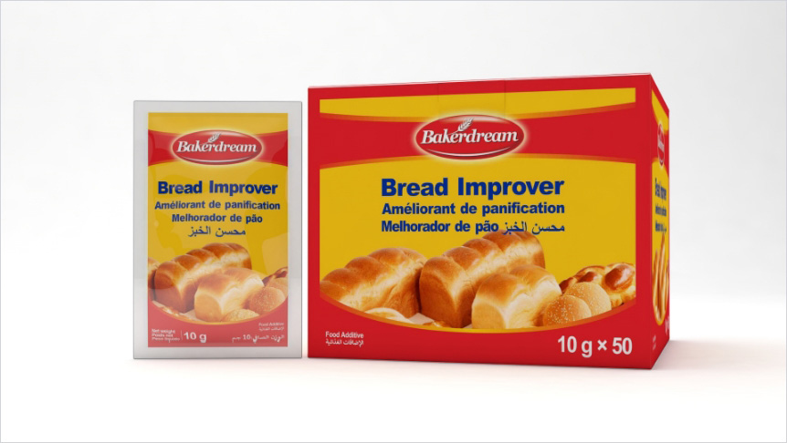 USAGE: Put the improver in water and mix well or premix with part of flour,then mix well with other flour