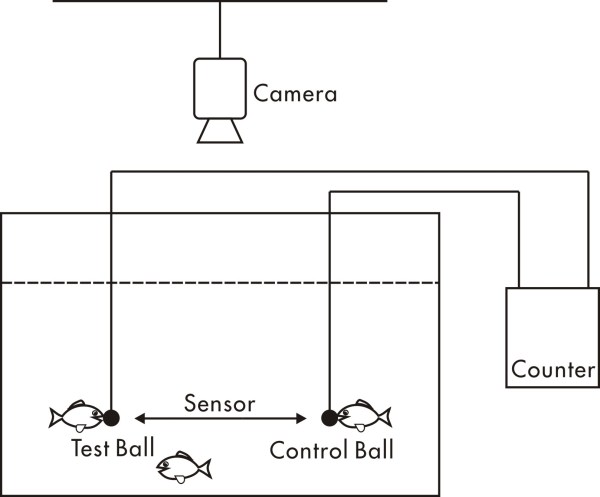 The two-ball method trial is one of research methods on observing feeding behavior of fishes, which is an important method determining palatability performance of feed additives. However, the touch of fish's body to the ball would affect test results during the two-ball method trial. Therefore, video monitoring equipments were used in the trial in order to improve data precision.