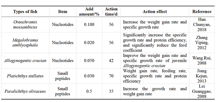 Table 1 The effect of nucleotides and small peptides on the growth performance of fish