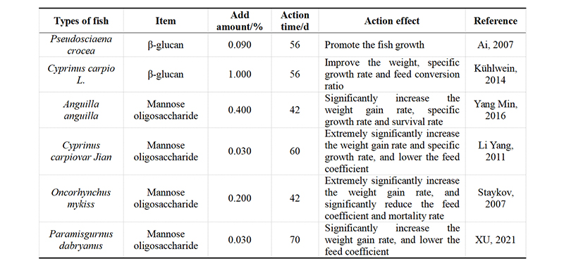 Table 2 The effect of β-glucan and mannose oligosaccharide on the growth performance of fish