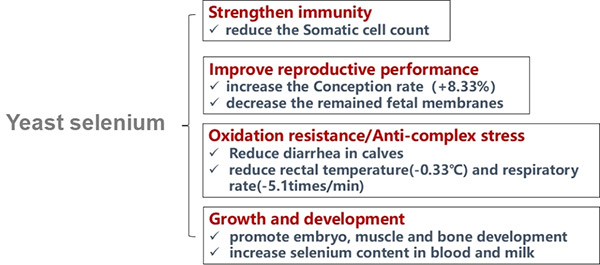 ② Selenium can improve cellular and humoral immunity, reduce the incidence rate of mastitis, and reduce somatic cell counts.