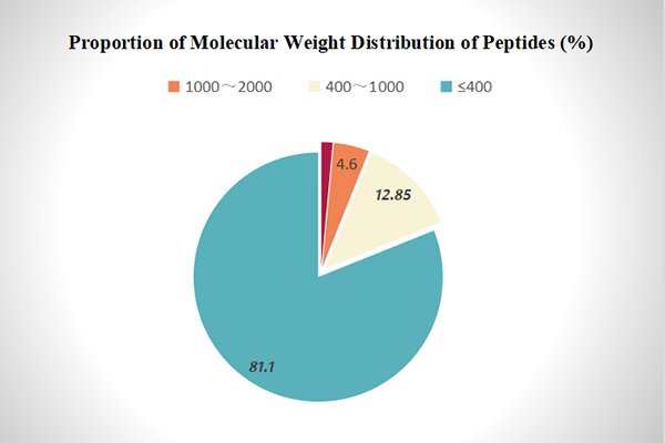 The second of the "three acids" refers to the yeast-derived amino acids. Amino acid substances in yeast glycoside are different in that they exist in the form of small peptides. The small peptides with a molecular weight less than 400 account for 80% of the amino acid substances, and those with a molecular weight less than 1,000 account for more than 90% of the amino acid substances, as shown in Fig. 2. Small peptides can not only be easily absorbed by plants and utilized as nitrogen sources, but also can promote the rapid growth of plants as signal substances.