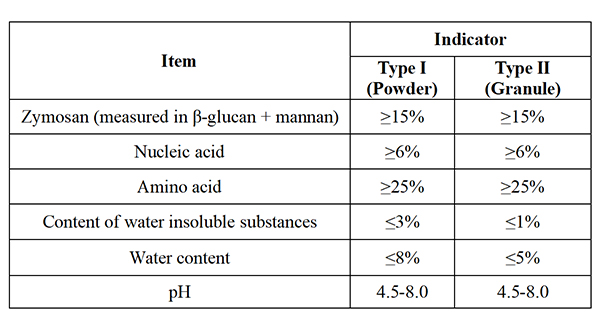 The physicochemical requirements and hygiene requirements for yeast glycoside are shown in Table 1 and Table 2.