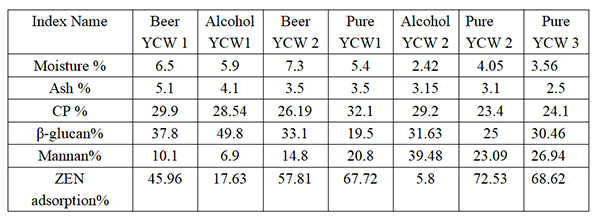 Table 1 Different yeast cell wall indexes and adsorption effects for ZEN