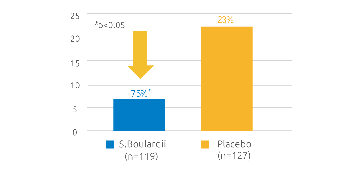 Effect of S.boulardii on antibiotic-associated diarrhea