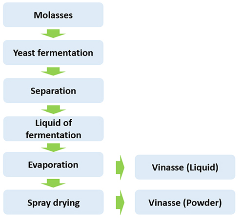 Vinasse is rich in protein, amino acids, organic acids, vitamins, minerals, biochemical fulvic acid, and unknown growth factors synthesized by microorganisms in the fermentation process. Table 1 showed a typical analysis for liquid vinasse products.